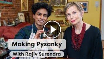 Last week, Rajiv Surendra visited the Ukrainian Institute of America, where he met with Sofika Zielyk, curator of the exhibit, to learn about the art of pysanky, Ukrainian Easter eggs decorated with a wax-resist technique. Dating back centuries, pysanky have served as symbols of cultural identity, religious significance and artistic expression. Watch as he and Sofika delve into the stories and symbolism intricately woven into each handcrafted design as she teaches him the traditional techniques of making them.
